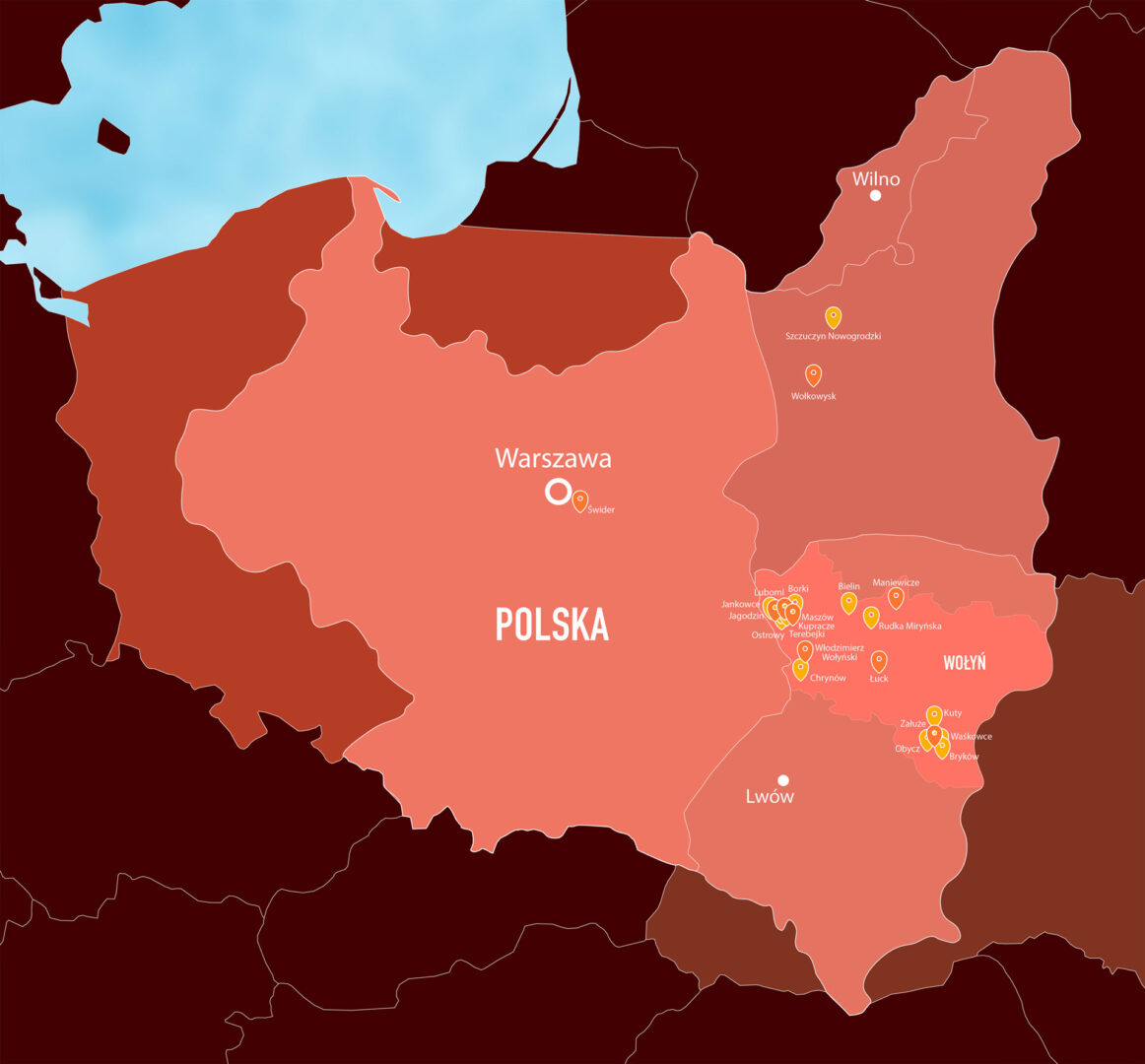 Mapy poniżej prezentują miejsca pobytu i pracy sióstr Terezjanek na terytorium II Rzeczypospolitej, które obejmowało fragmenty dzisiejszej Polski, Litwy, Białorusi i Ukrainy. W okresie przedwojennym siostry Terezjanki były najbardziej aktywne w powiatach Luboml i Krzemieniec. W Maszowie, Lubomlu, Jagodzinie i Załużu mieściły się domy zakonne. W pozostałych miejscowościach siostry pracowały lub przebywały czasowo.